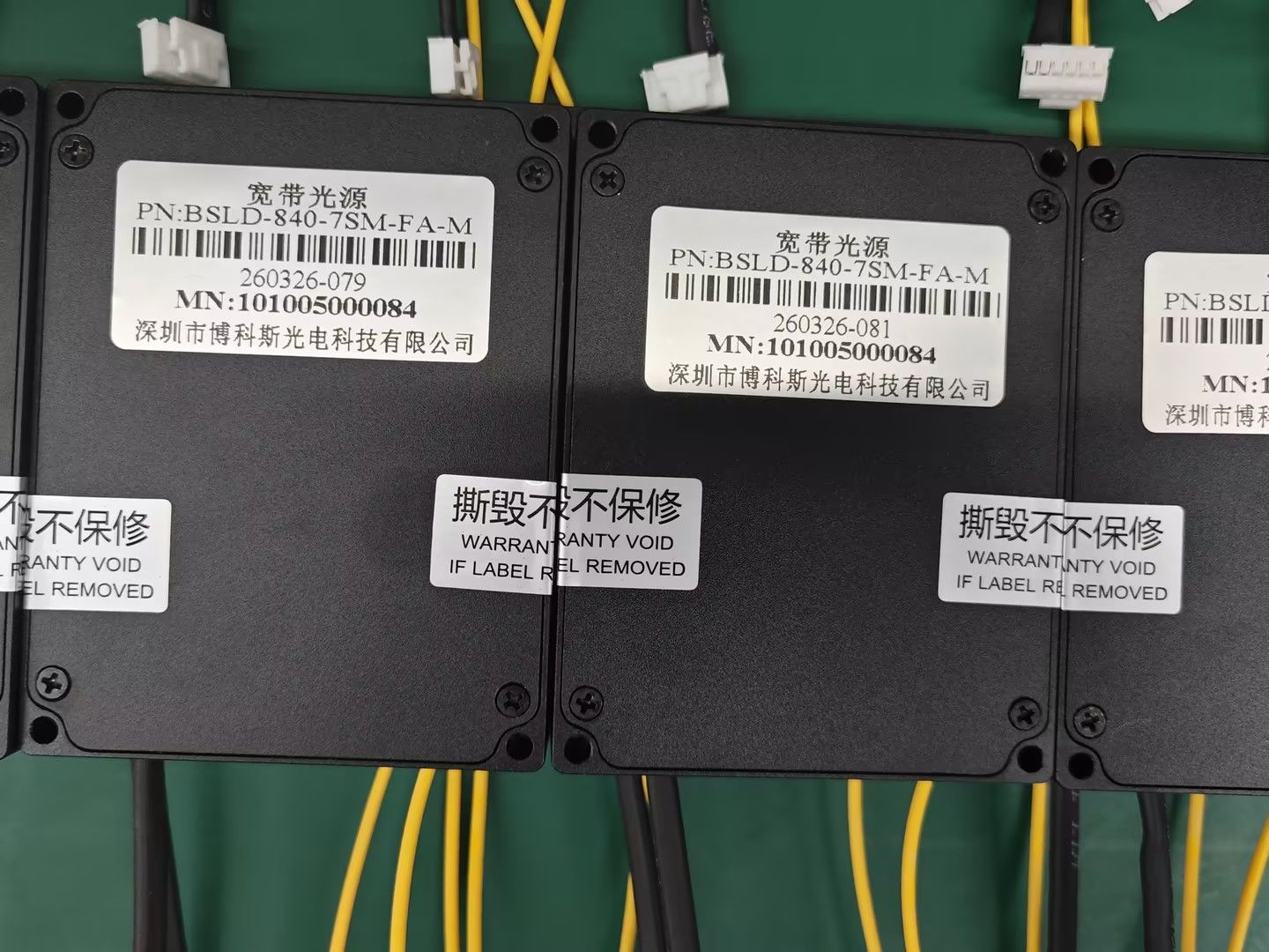 Наскоро Shenzhen Box Optronics Technology Co., Ltd. завърши производството и окончателното тестване на партида отBSLD-840-7SM-FA-M Модули за широколентов източник на светлина, които плавно навлязоха в процеса на доставка, за да осигурят стабилни и надеждни решения за източници на светлина за приложения на клиентите в оптична комуникация, сензори и други области.
